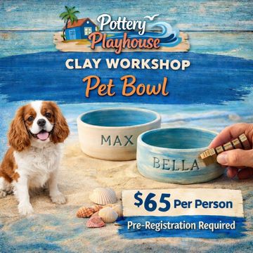 Make a custom bowl for your dog or cat and personalize it with your pet’s name. A fun specialty workshop and a great gift idea.